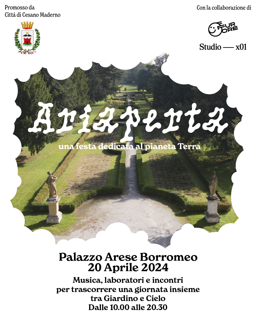 Ariaperta è una festa pensata per celebrare un’opportunità incredibile: quella di essere nati dentro un mondo naturale vibrante e pieno di meraviglie. Un evento dedicato al pianeta Terra e alla sostenibilità, promosso ed organizzato dal Comune di Cesano Maderno, curato dallo studio di progettazione culturale Ufficio Furore e prodotto dall’agenzia creativa Studio x01, che si terrà sabato 20 aprile, dalle 10 alle 20.30, a Palazzo Arese Borromeo, tra le sale affrescate ed il Giardino. L’ingresso è libero, “aperto” alla partecipazione di tutta la cittadinanza.