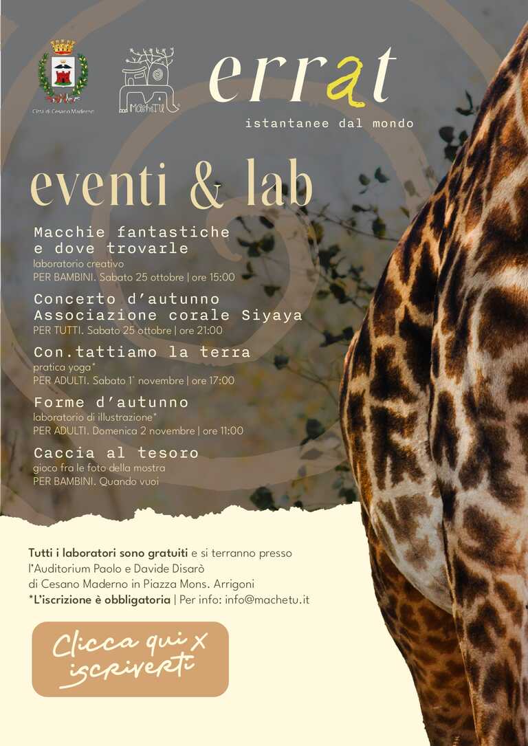 Tutti i laboratori sono gratuiti e si terranno presso l’Auditorium Paolo e Davide Disarò di Cesano Maderno in Piazza Mons. Arrigoni.
